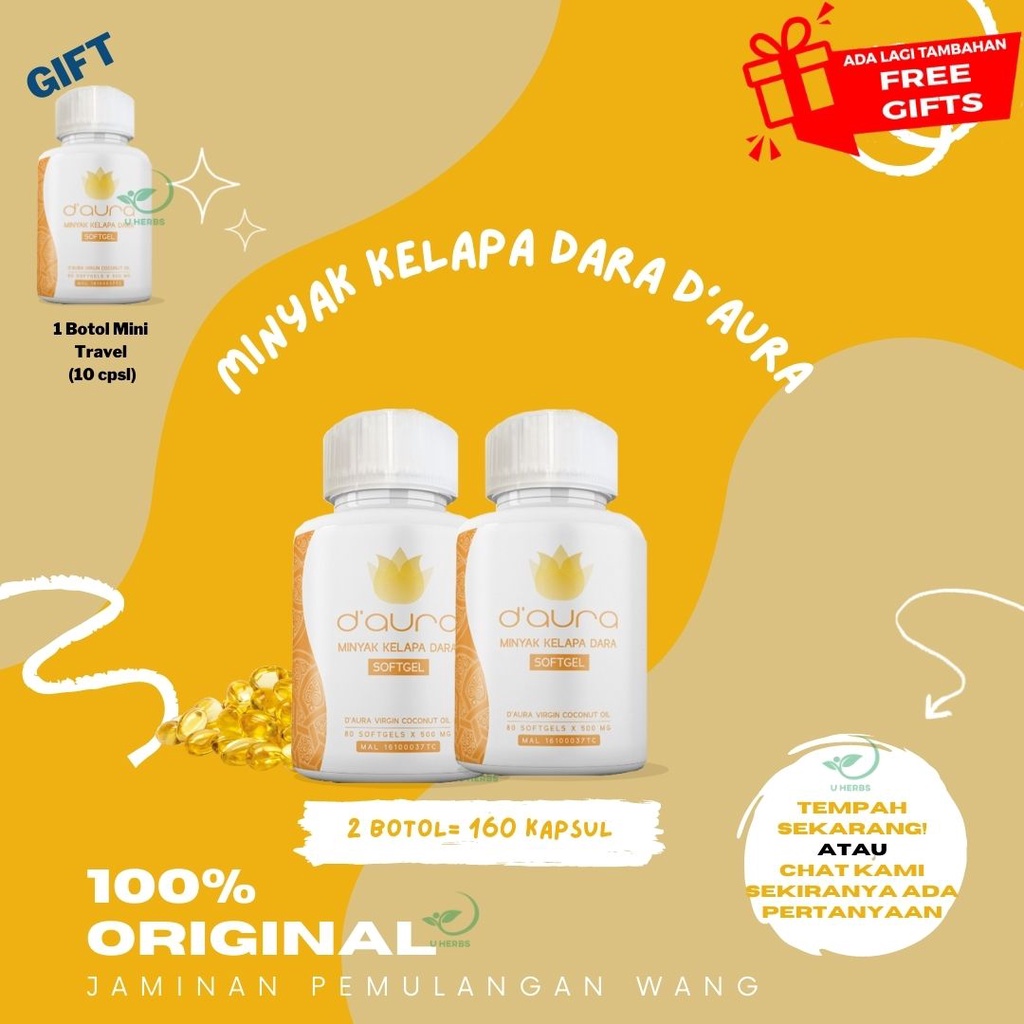 D Aura Minyak Kelapa Dara Vco 500mg 80 Softgels 100 Original Hq Free Gift Lazada